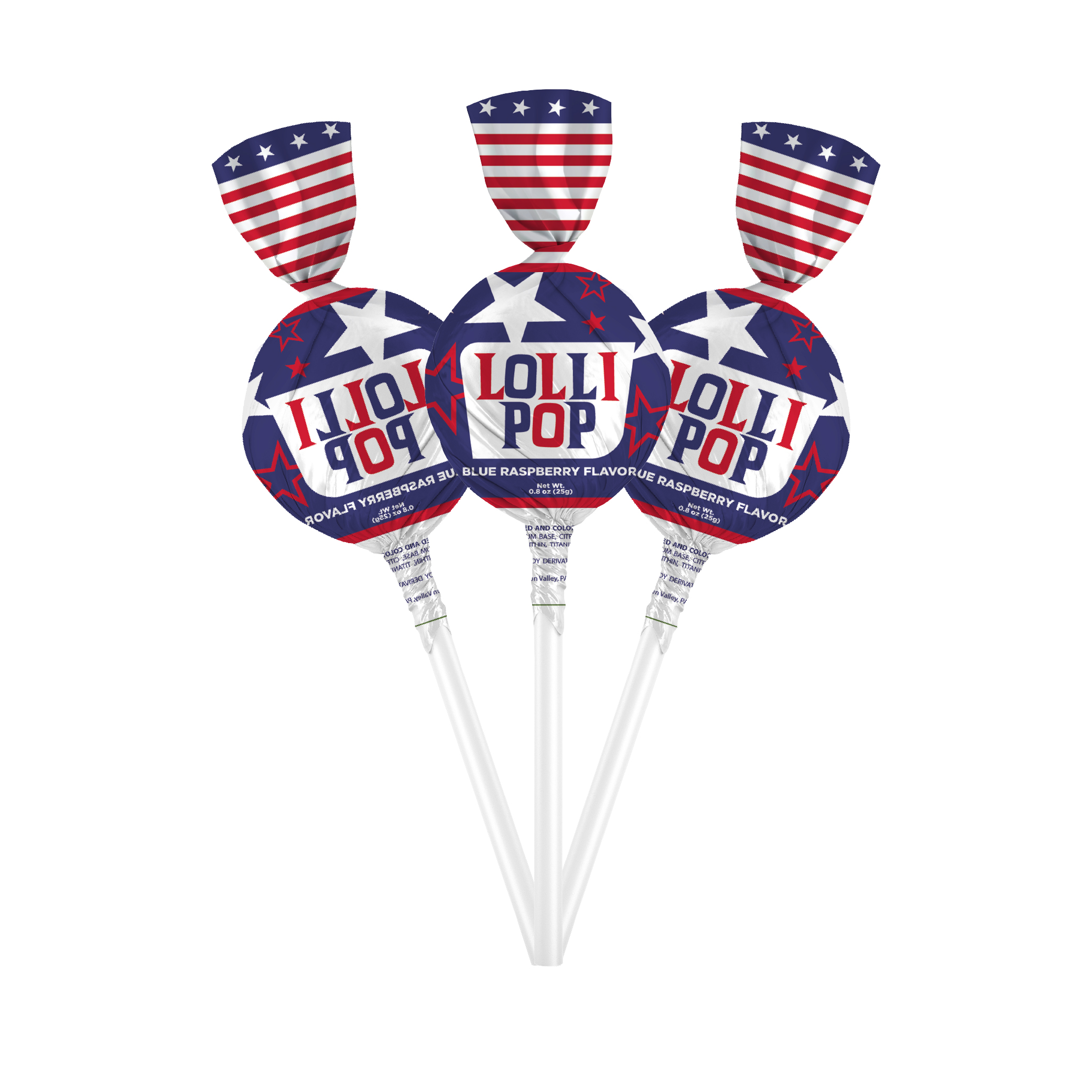 Patriotic Blue Raspberry Gum-Filled Lollipops